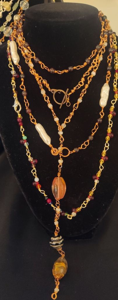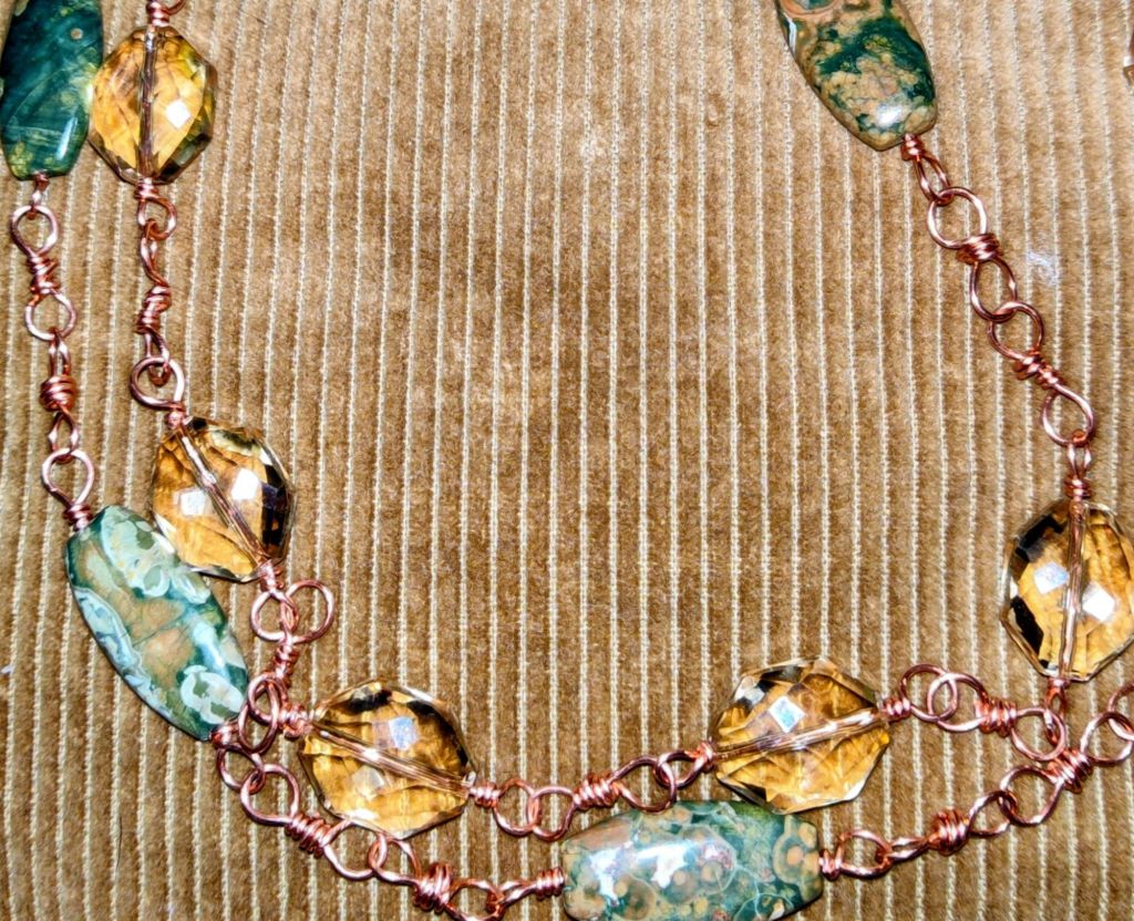 Double Necklace: Ocean jasper, champagne glass copper wire -