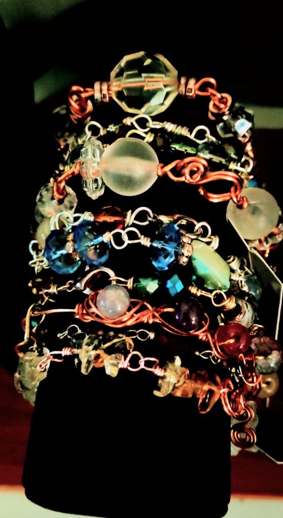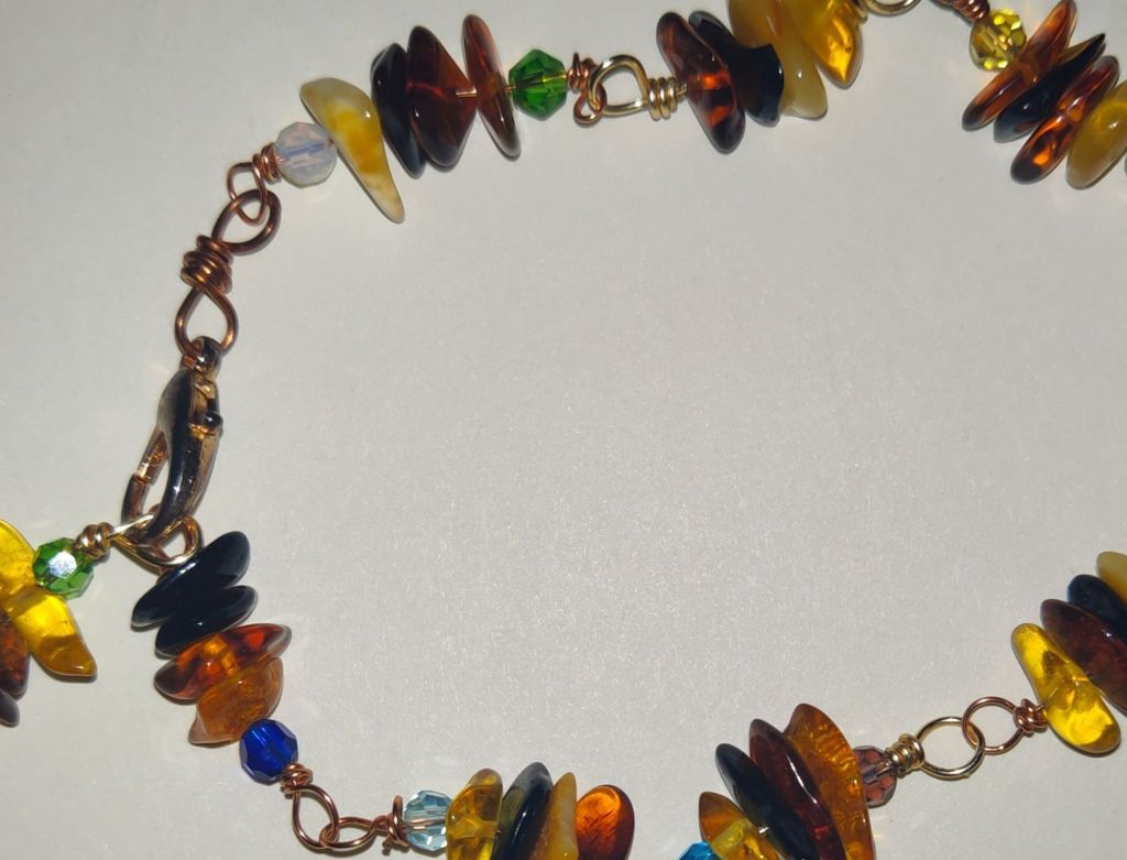 Amber, Czech glass & copper wire