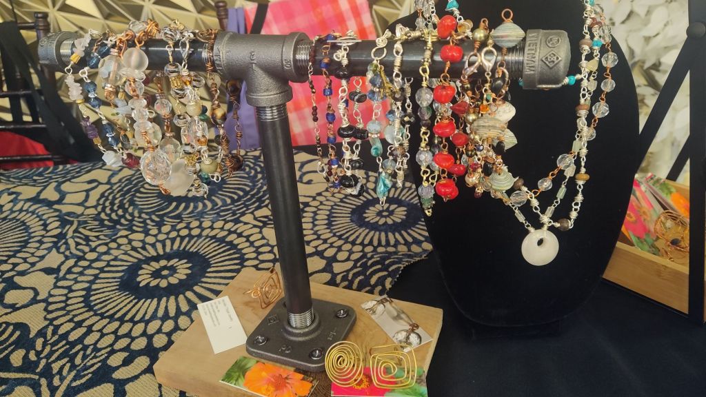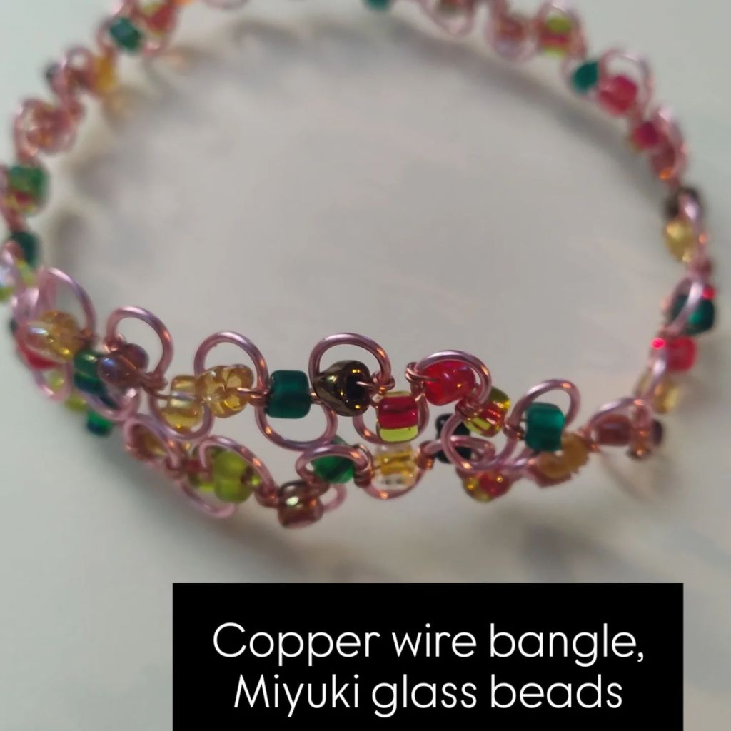 Wood beads, African glass, upcycled green beads, copper wire -