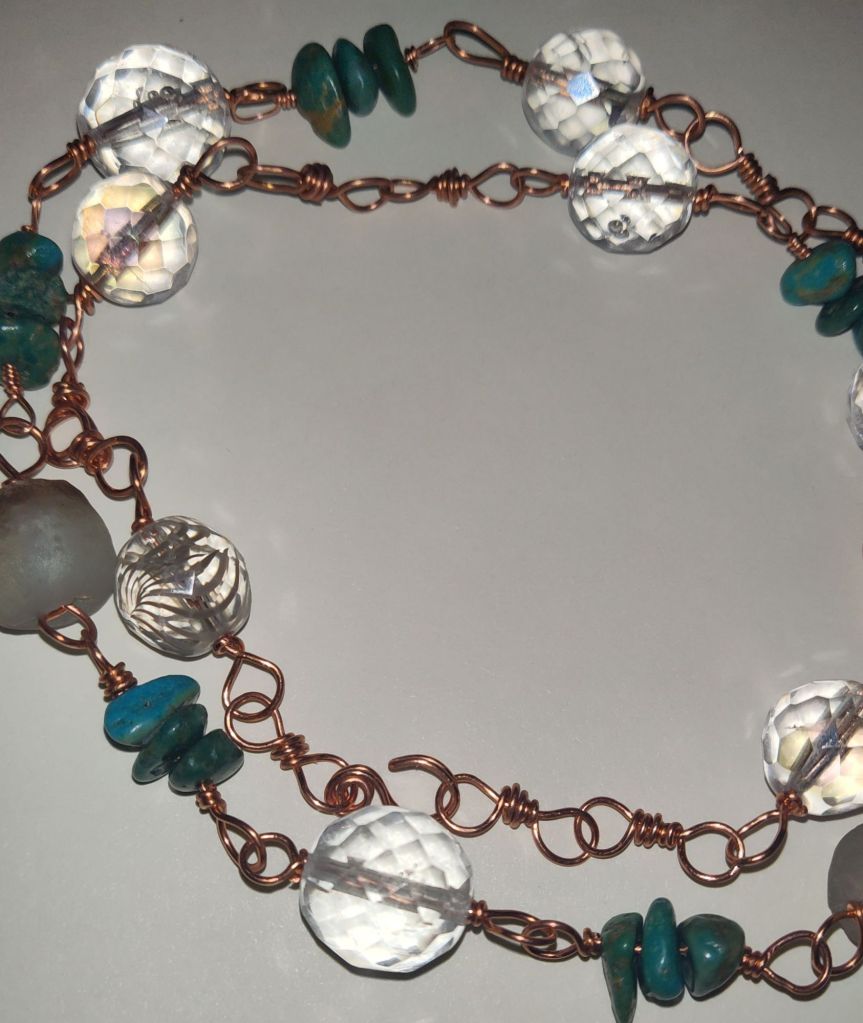 Turquoise beads, clear faceted Czech glass & copper wire
