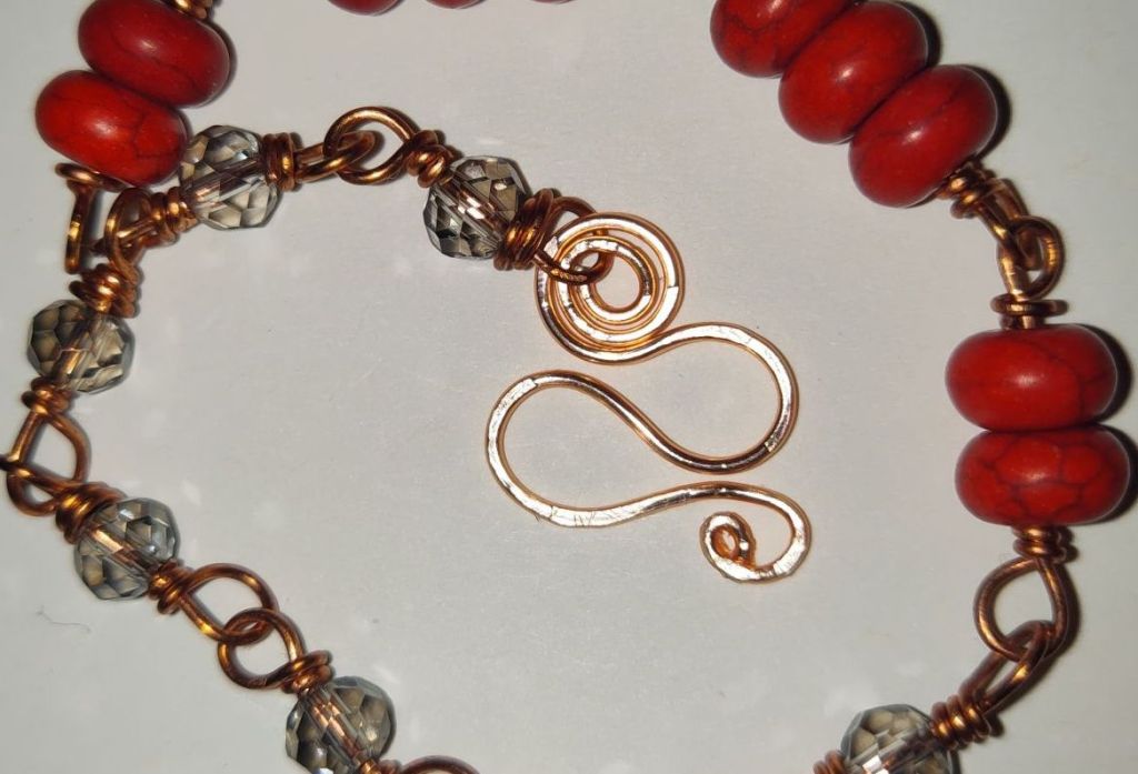 Red coral, faceted Czech glass, copper wire and gold copper clasp Red coral: vitality, protection and spiritual growth