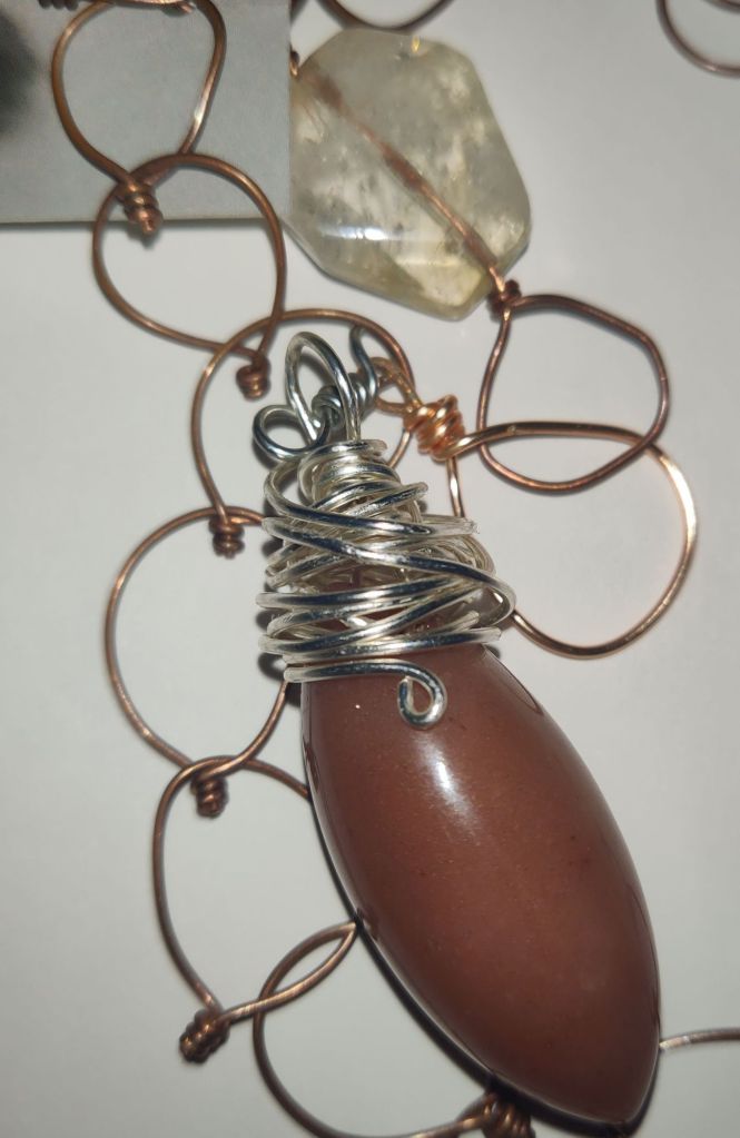 Moonstone pendant, Citrine, copper wire, silver copper wire, gold copper wire, handmade clasp silver copper wire -