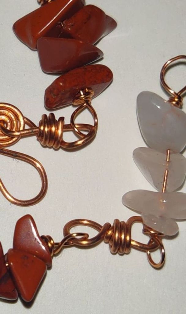 Rose quartz chips, moonstone & strawberry quartz chips, copper wire, copper clasp -
