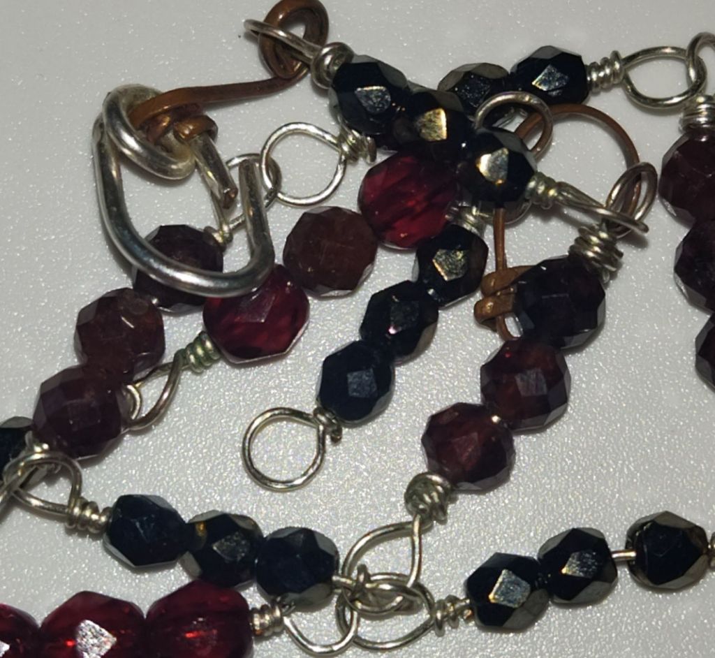 Garnet, green fire polished Czech glass silver copper wire & copper wire -